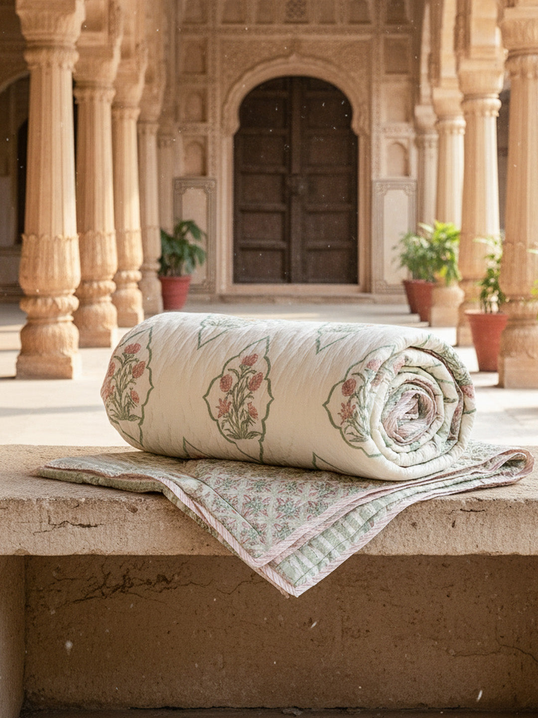 Soft, light weight, warm and breathable. It lets your skin breathe, cotton filling ensures that it keeps your body warm. Also helps to absorb moisture from the body during sleep and helps to regulate body temperature.
